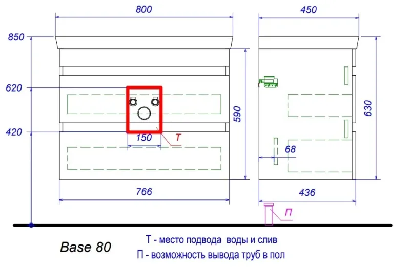 Base – это мебель для ванной комнаты, представленная в двух цветовых решениях: «дуб золотой/белый» и «бетон/белый». Коллекция состоит из подвесных тумб, оснащённых двумя вместительными выдвижными ящиками без ручек, открывающимися за край фасада. Умывальник приобретается дополнительно.