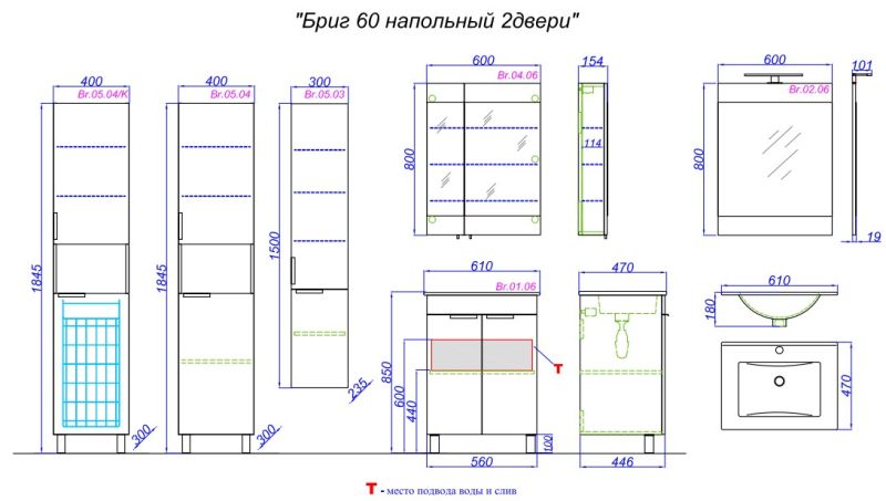 Ширина 56смВысота 83.5смГлубина 44.5смAqwella - это мебель для ванной премиум-класса.