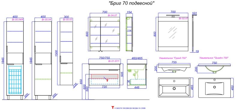 Ширина 72смВысота 49смГлубина 44.5смAqwella - это мебель для ванной премиум-класса.