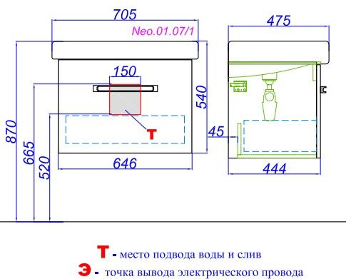 Тумба под раковину Aqwella Нео Q70 Neo.01.07/1