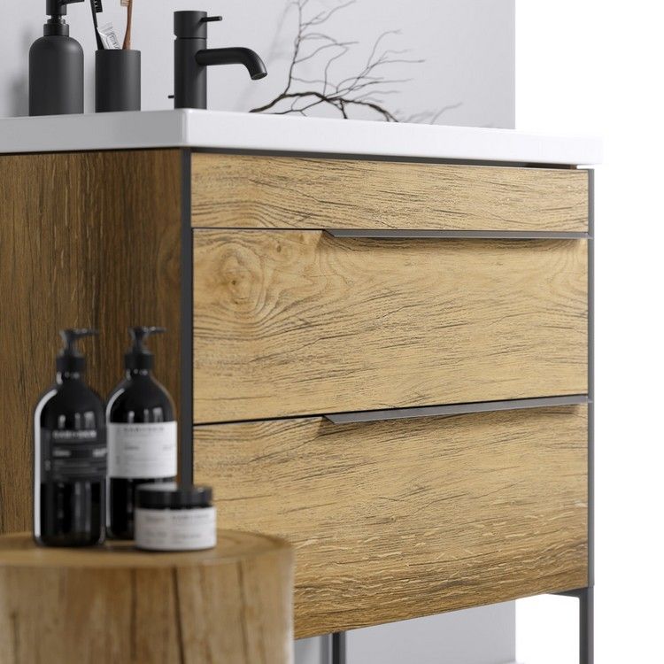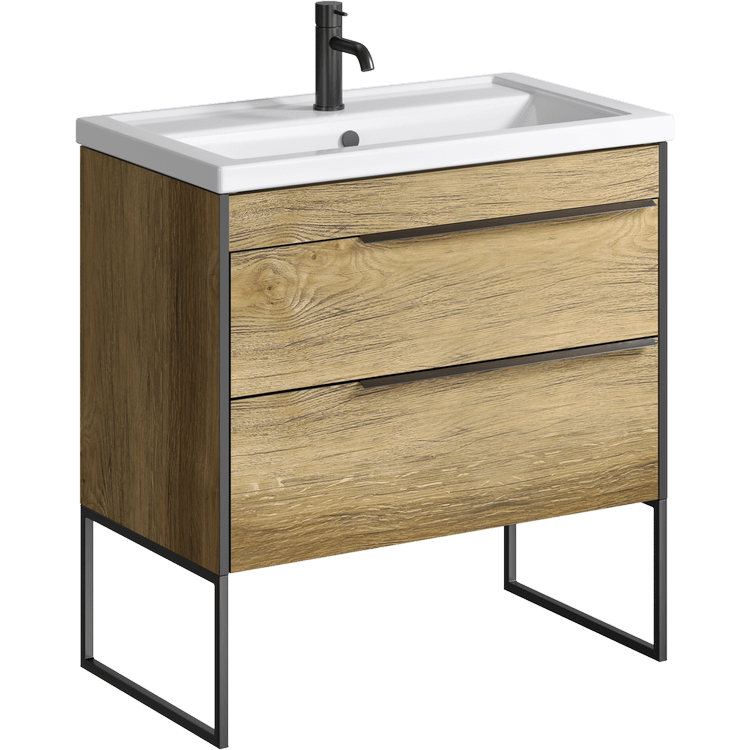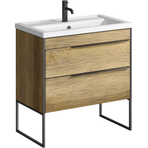 Тумба под раковину Aqwella Fargo FRG0108DB+FRGN440 80 смНапольная тумба в цвете дуб балтийский с двумя ящиками с умывальником