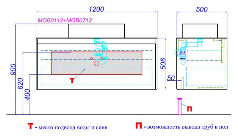 Корпус тумбы под раковину Aqwella Mobi 120 MOB0112DB купить