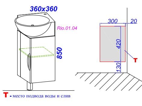 Тумба под раковину Aqwella Rio 36 см Rio.01.04 купить