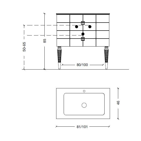Тумба под раковину Armadi Art Vallessi Avangarde Piazza 80см чёрный/золото 841-080-BG купить
