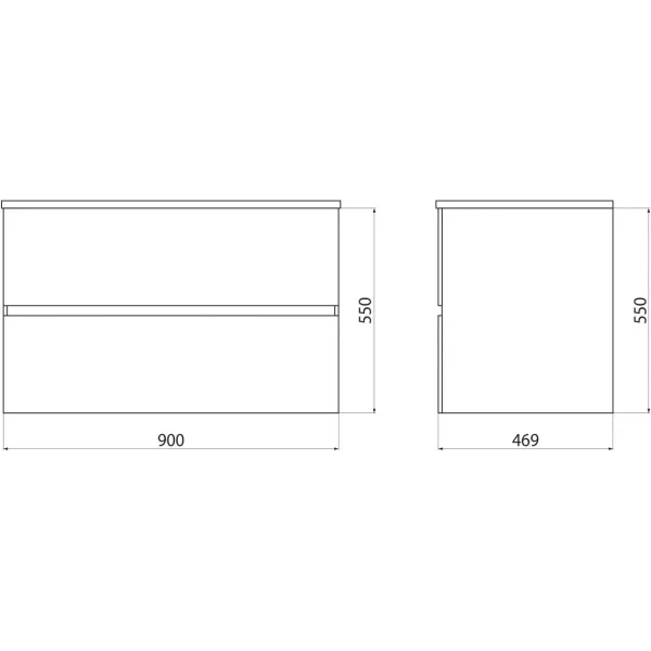 ELEGANT База под раковину подвесная с двумя выкатными ящиками, с LED подсветкой ручек. Серый матовый, 870x469x550 AM-ELEGANT-900-2C-SO-GM-LED