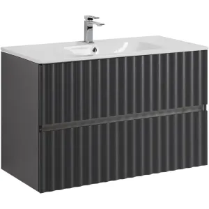 Тумба под раковину ArtMax Elegant AM-ELEGANT-900-2C-SO-GM-LED 90 см серый матовый