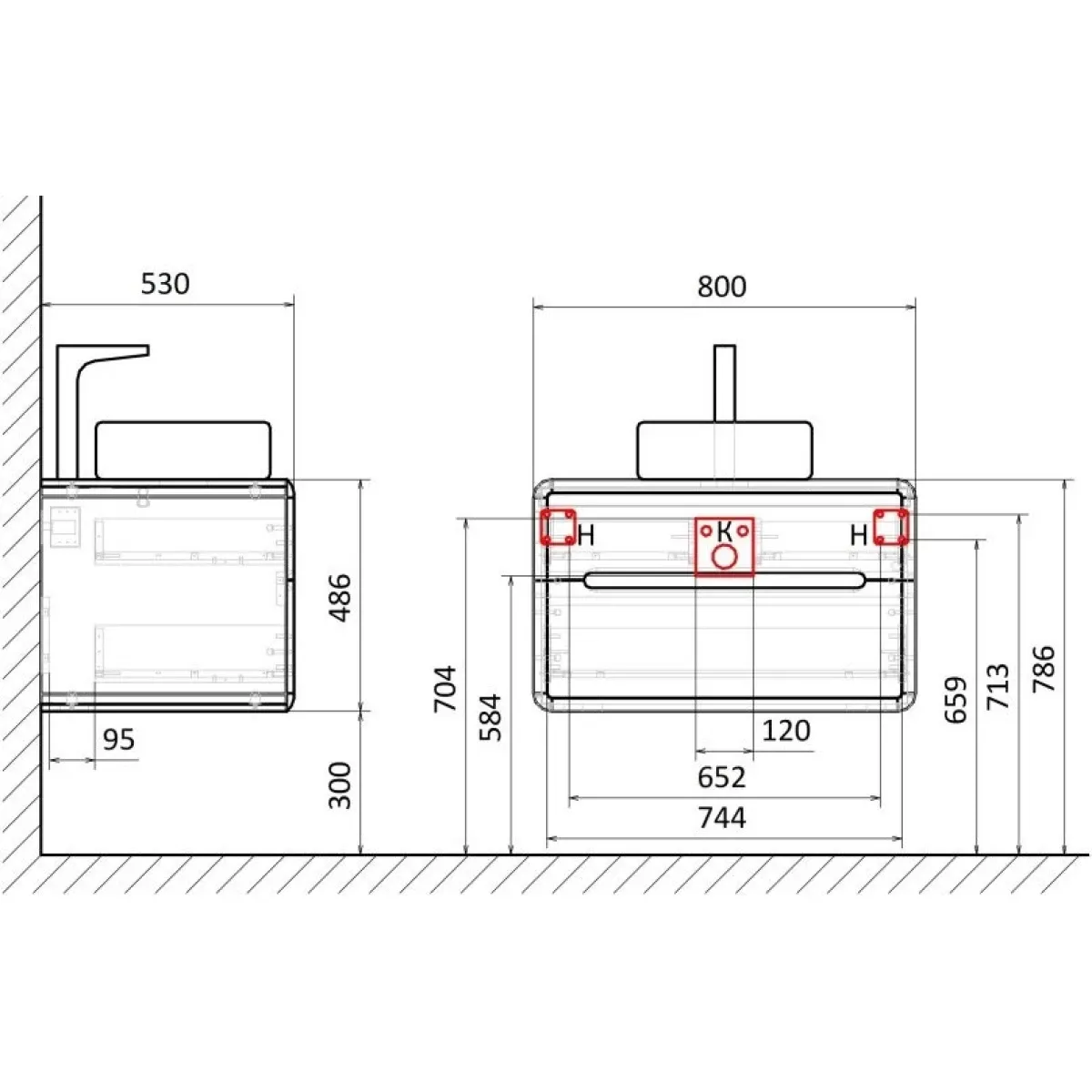 GENOVA База подвесная, с двумя выкатными ящиками, Бетон бромо AM-Genova-800-2C-SO-BC
