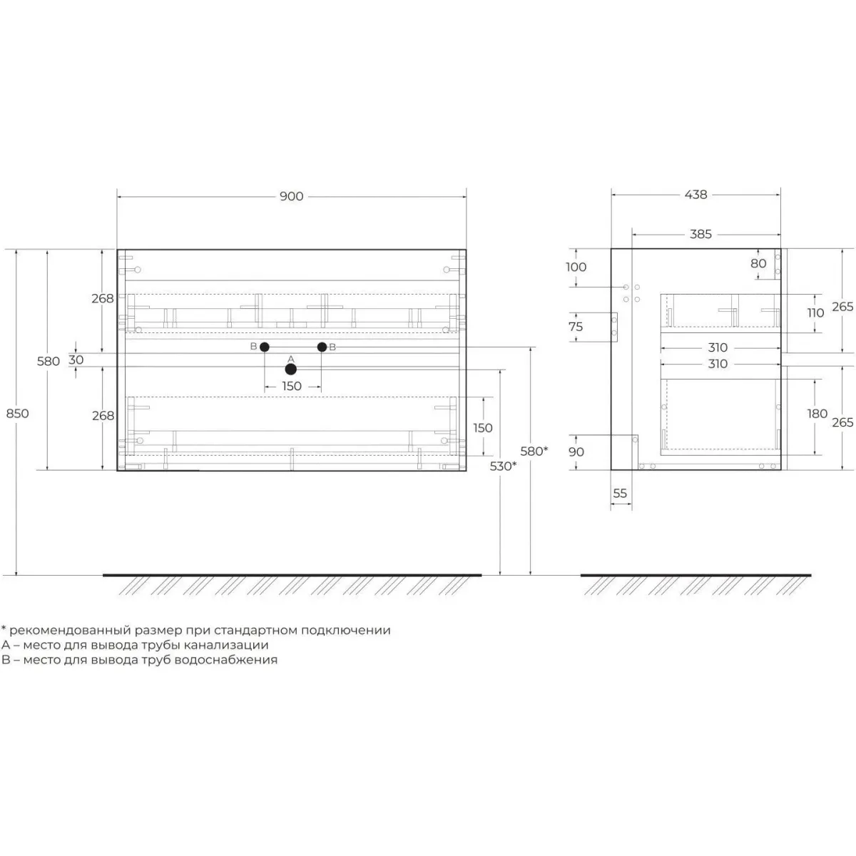 TORINO База под раковину подвесная с двумя выкатными ящиками, Палом AM-TORINO-900-2C-SO-PA-P