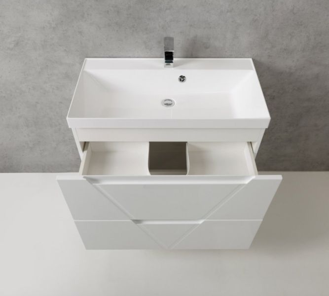 Дополнительная информация: база оснащена доводчиками Hettich скрытого монтажа с системой Soft close (плавного закрывания) - от ведущего производителя фурнитуры для мебели HETTICH (Германия);врезные (фрезерованные)ручки в плоскости фасада; раковина сифоном не комплектуется