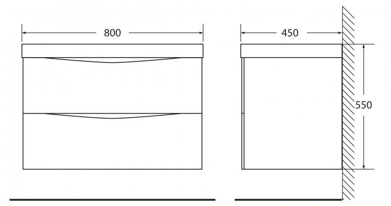 Дополнительная информация: база оснащена доводчиками, ручки скрыты в плоскости фасада, раковина сифоном не комплектуется