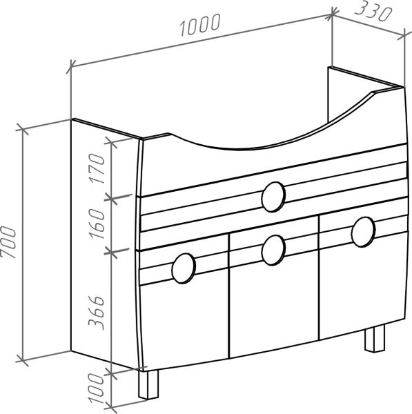 Тумба под раковину Bellezza Абрис 105см белый 00000006118