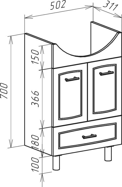 Тумба под раковину Bellezza Классик 55см белый 00000011074