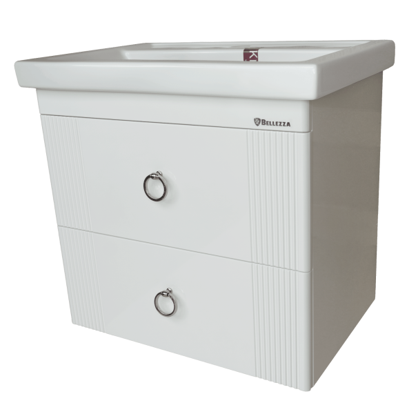 Подвесная тумба Bellezza Виана шириной 60 см в белом глянцевом исполнении — это идеальное решение для малогабаритных ванных комнат, где важны чистота линий, функциональность и визуальная легкость. Модель с интегрированной раковиной и двумя ящиками сочетает в себе австрийское качество материалов, продуманную организацию пространства и современный дизайн.