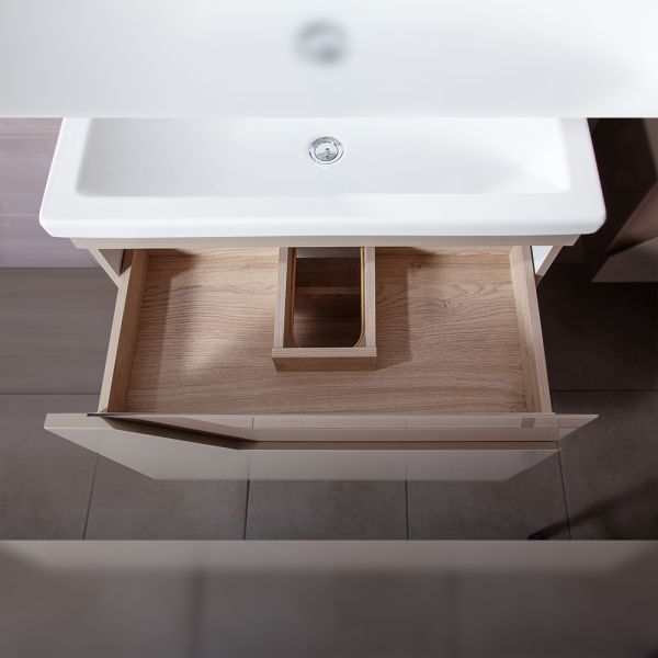 Функциональные особенности таких тумб варьируются от наличия выдвижных ящиков до встроенных систем хранения, которые помогают организовать пространство ванной комнаты. Важным аспектом является также возможность выбора различных цветовых решений и отделок, что позволяет гармонично вписать тумбу в любой интерьер – от классического до ультрасовременного.