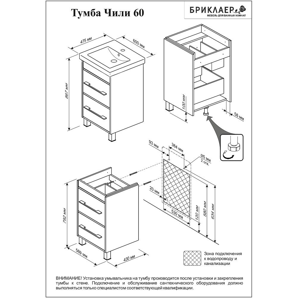 Тумба под раковину Бриклаер Чили 4627125414992 60 см светлая лиственница купить