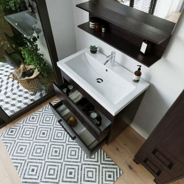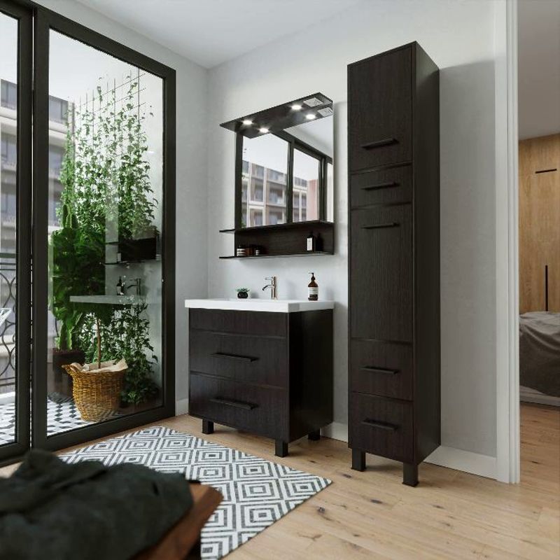 Удобная система хранения позволяет размещать все необходимое для гигиенических процедур, а её продуманные размеры отлично вписываются даже в небольшие помещения. Стильные ручки и элегантные фасады придают тумбе особый шарм, а разнообразие цветовых решений позволит выбрать модель, соответствующую любому интерьеру – от классического до модерн.