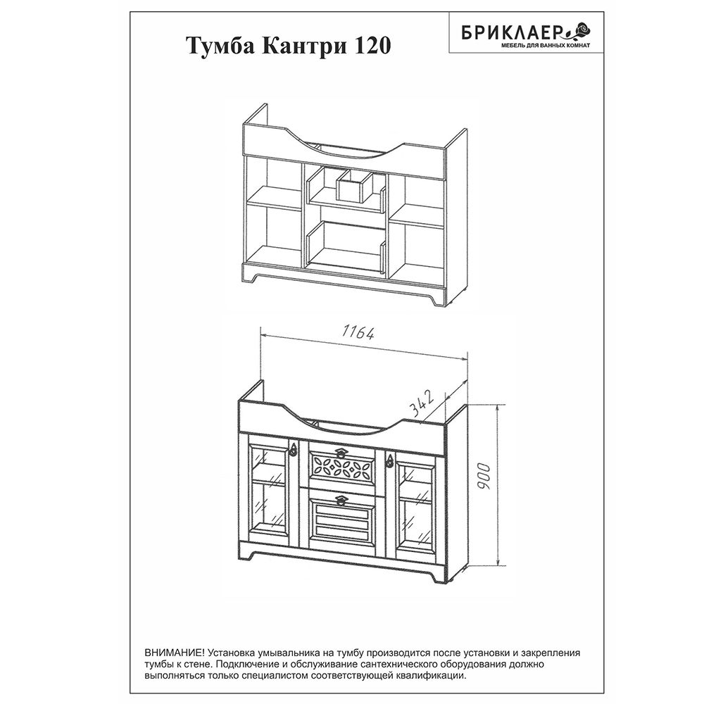 Тумба под раковину Бриклаер Кантри 4627125413674 120 см бежевый дуб прованс купить