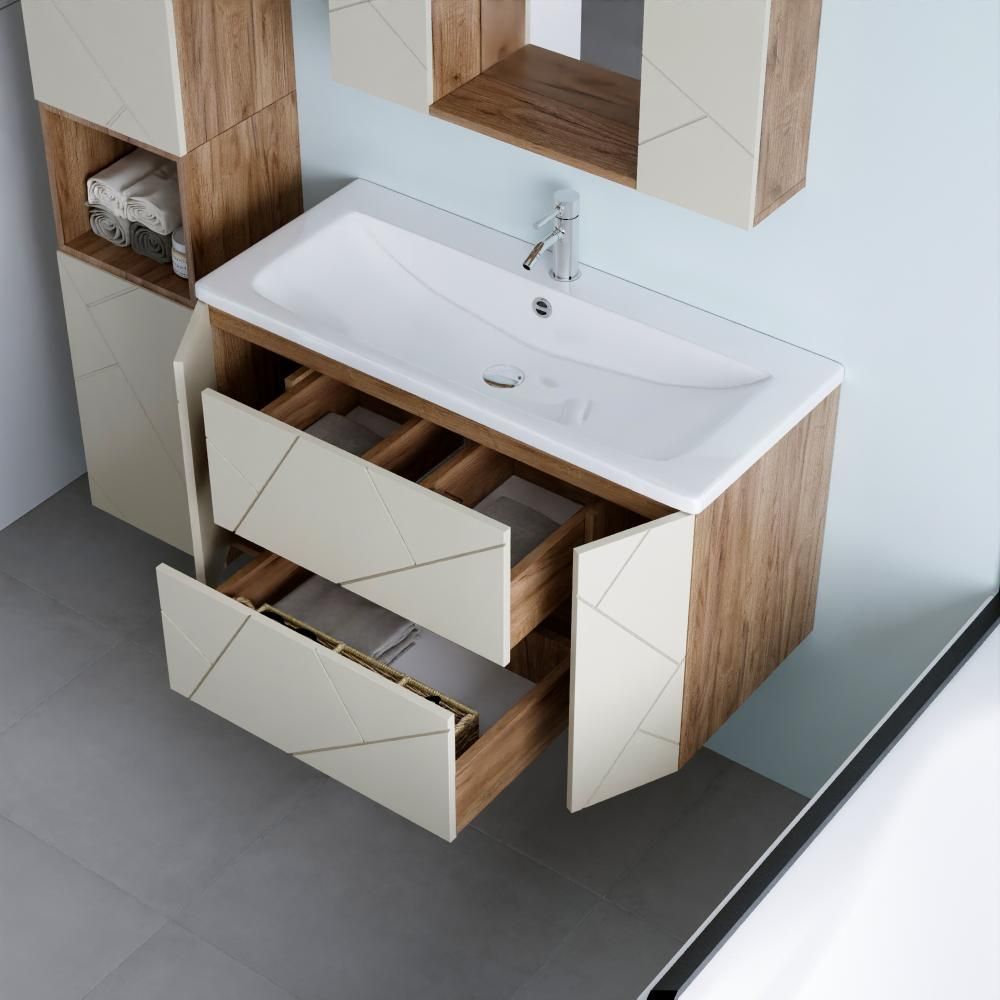 С помощью подвесной тумбы ванная комната становится не только более удобной, но и эстетически привлекательной, создавая атмосферу уюта и роскоши.