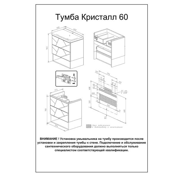 Тумба под раковину Бриклаер Кристалл 4627125416927 60 см латте купить