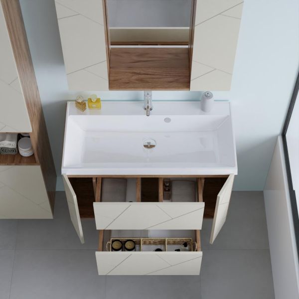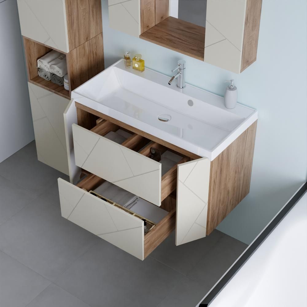 Функциональные особенности таких тумб варьируются от наличия выдвижных ящиков до встроенных систем хранения, которые помогают организовать пространство ванной комнаты. Важным аспектом является также возможность выбора различных цветовых решений и отделок, что позволяет гармонично вписать тумбу в любой интерьер – от классического до ультрасовременного.