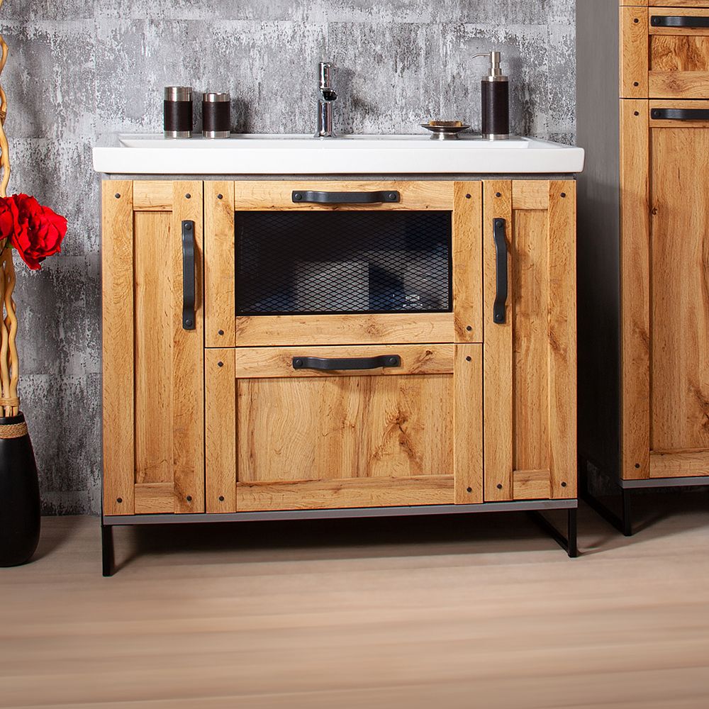 Тумба под раковину Бриклаер Лофт 4627125413377 100 см метрополитен грей