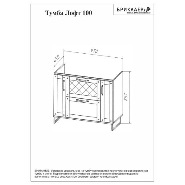 Тумба под раковину Бриклаер Лофт 4627125413377 100 см метрополитен грей купить