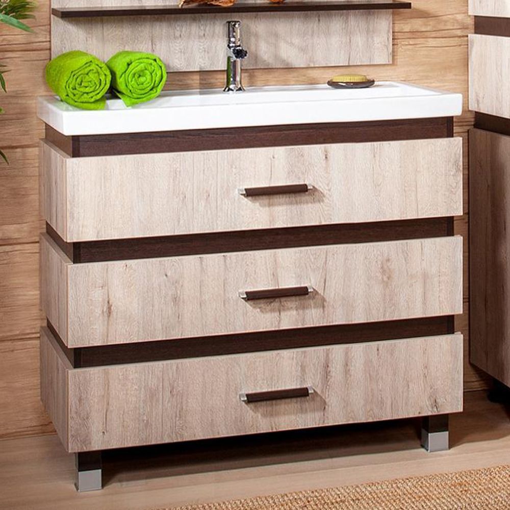 Удобная система хранения позволяет размещать все необходимое для гигиенических процедур, а её продуманные размеры отлично вписываются даже в небольшие помещения. Стильные ручки и элегантные фасады придают тумбе особый шарм, а разнообразие цветовых решений позволит выбрать модель, соответствующую любому интерьеру – от классического до модерн.