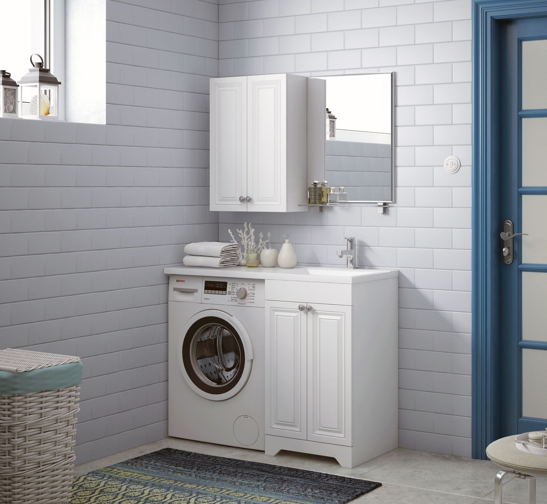 умба под раковину Corozo Леон 50, SD-00000890, для установки со стиральной машиной, белаяУ тумбы "Леон 50" 2 распашные дверки. За дверками находятся полочки. Тумба предназначена под накладную раковину 1100 мм и стоит рядом со стиральной машиной. Петли на двери с доводчиками. Коромысло, дверь, фасады ящиков, цоколь - МДФ в плёнке белой, корпус - ЛДСП.