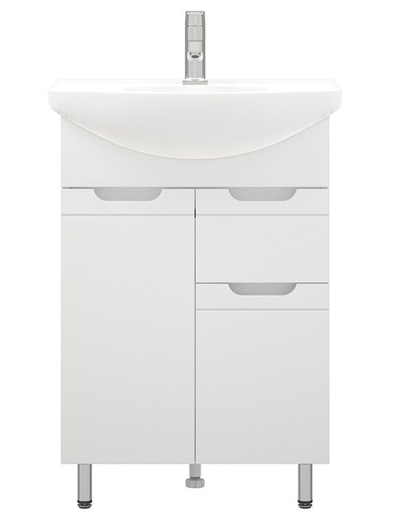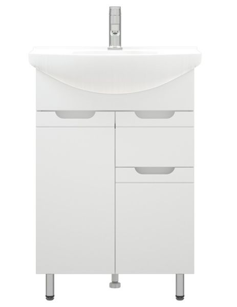 Тумба под раковину Corozo 60 Z1, 60 см, цвет белый, SD-00001491Коллекция мебели для ванных комнат "ЛЕЯ" создана для тех, кто ценит простоту форм, сочетание округлых и прямых линий, удобство эксплуатации. У мебели коллекции «ЛЕЯ» корпус выполнен из ЛДСП, фасады - из влагостойкой плиты МДФ, покрытие – пленка ПВХ. В верхней части стойки расположены полки, в нижней части - высокие боковины. Фурнитура с лицевой стороны фасадов отсутствует, вместо нее предусмотрены интегрированные ручки с декоративной полосой тонкой фрезеровки. Высота ящика по 110 мм. Тумба подходит под раковину Corozo Элеганс 60 см. Раковина приобретается отдельно.