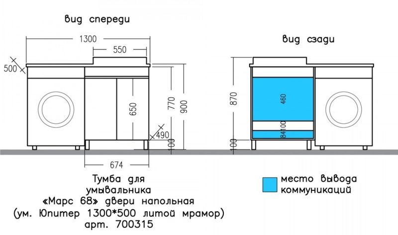 Тумба под раковину для стиральной машины СанТа Марс 700315 напольная 68см белый