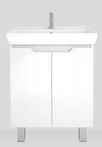 Тумба под раковину Dreja Q PLUS (D) 99.1005 70 см Белый глянецТумба Q PLUS (D), 55 см, подвесная/напольная, 2 дверцы, с опорами, белый глянец