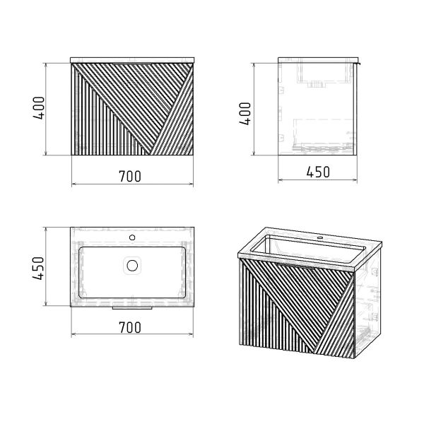 Тумба под раковину Grossman Блисс 107053 70 см подвесная цвет графит