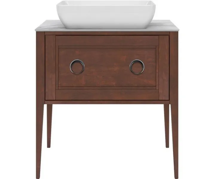Напольная тумба с одним выдвижным ящиком выполнена из массива ольхи с отделкой «закрытая пора». Вместительный ящик с плавным закрыванием украшен двумя крупными ручками. Сочетается с керамическими столешницами PLAZA Classic шириной 80 см. Подходит для установки раковин с типом монтажа «встраиваемая снизу».