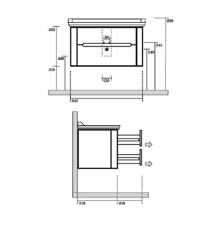 Габариты корпуса тумбы (ВхШхГ): 500х740х510 мм.