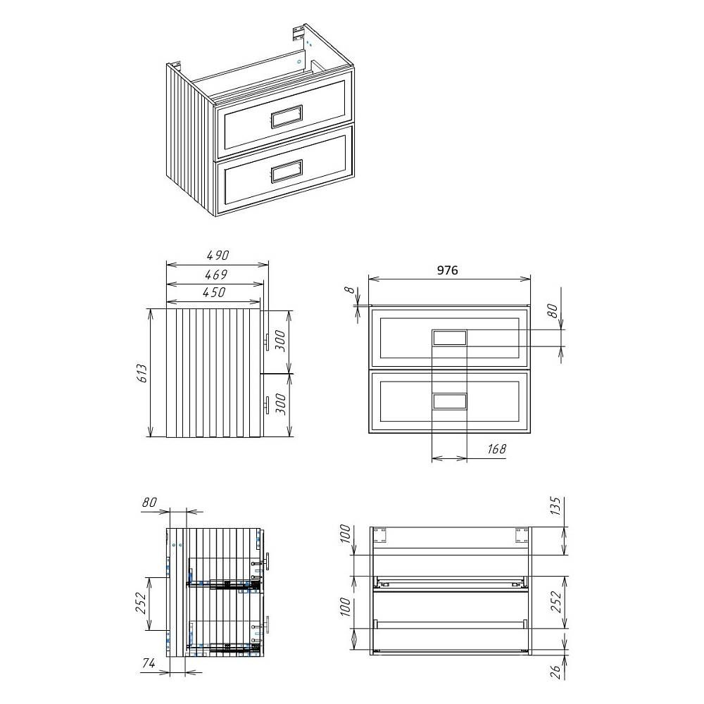 Тумба под раковину La Fenice Cubo TWIN FNC-01-CUB-G-100-2 97.6 см