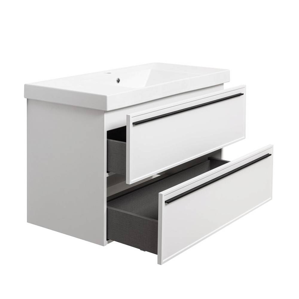Тумба под раковину La Fenice Elba FNC-01-ELB-B-100-2 97.6 смПодвесная тумба La Fenice Elba TWIN FNC-01-ELB-B-100-2 обладает рядом неоспоримых преимуществ. Тумбу можно оснастить встраиваемой раковиной (арт.CU.NN.100), либо же приобрести столешницу в подходящем цветовом решении (арт. FNC-03-PL01-100, FNC-03-VS03-100) и установить на неё раковину-чашу. За счет входящего в комплект сифона Prevex, тумба обладает полноценными ящиками для хранения (без выреза). Ящики выполнены в фантазийной цветовой гамме "Лён антрацит". Тумба оснащена скрытыми доводчиками плавного закрывания частичного выдвижения Samet (Турция) и подвесным регулируемым механизмом Camar (Италия). Фасад и корпус тумбы покрыты краской и матовым лаком, что является надёжной защитой от влаги. Прекрасным и функциональным дополнением к тумбе станет пенал La Fenice Elba белого цвета FNC-05-ELB-B-30