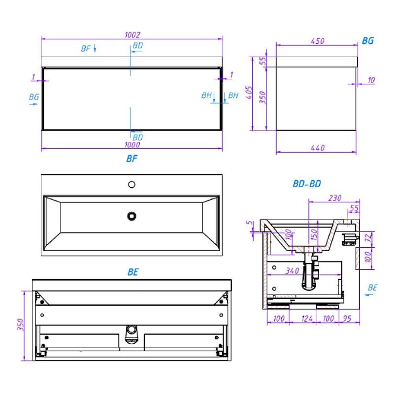 Тумба под раковину La Fenice Simpla FNC-01-SIM-BG-100 Синяя матовая 100 см купить