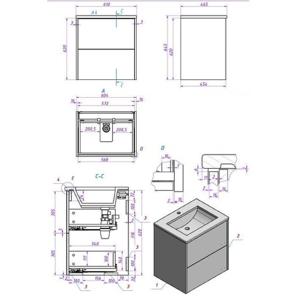 Оснащение: скрытые доводчики SAMET (Турция) плавного закрывания частичного выдвижения, подвесной регулируемый механизм Camar (Италия).