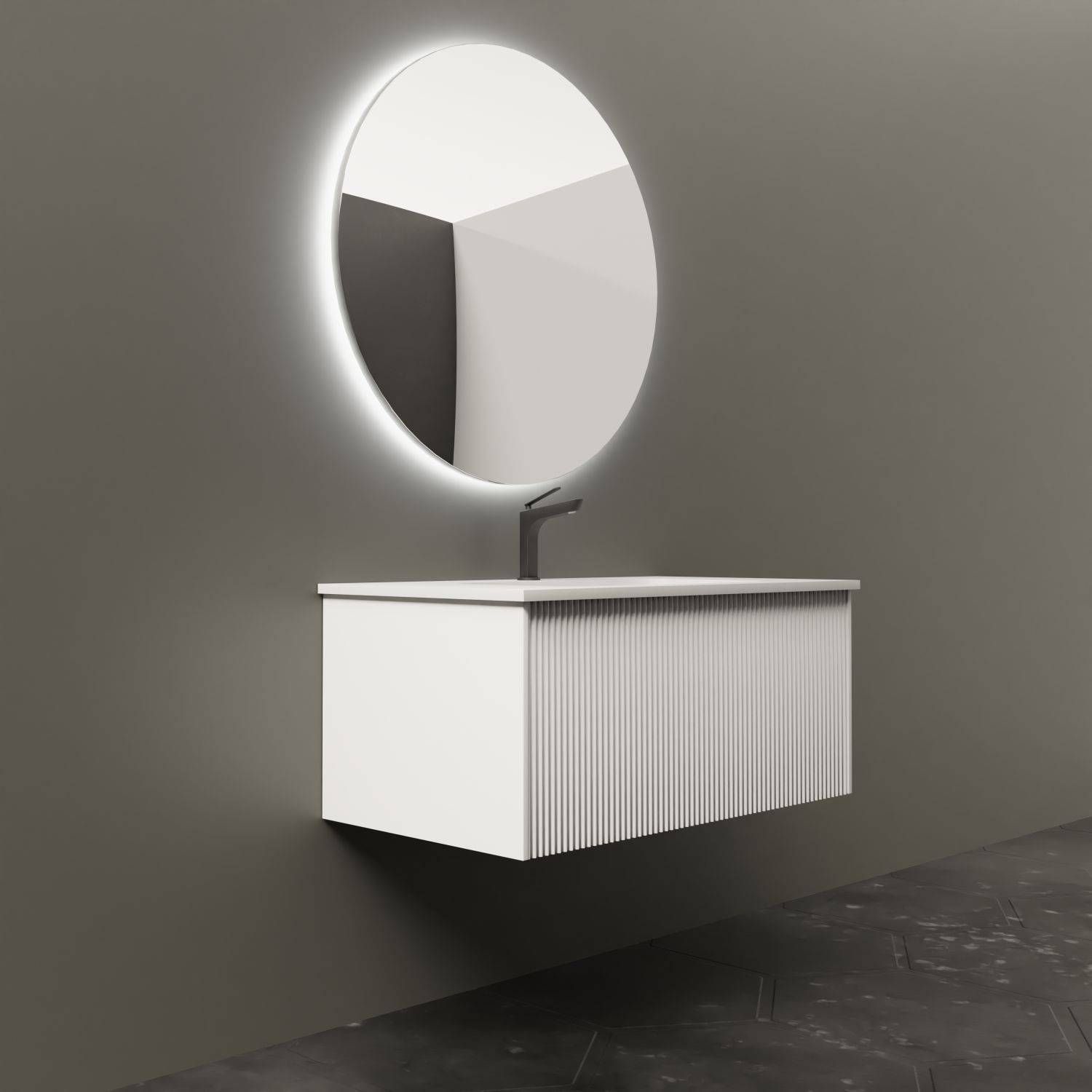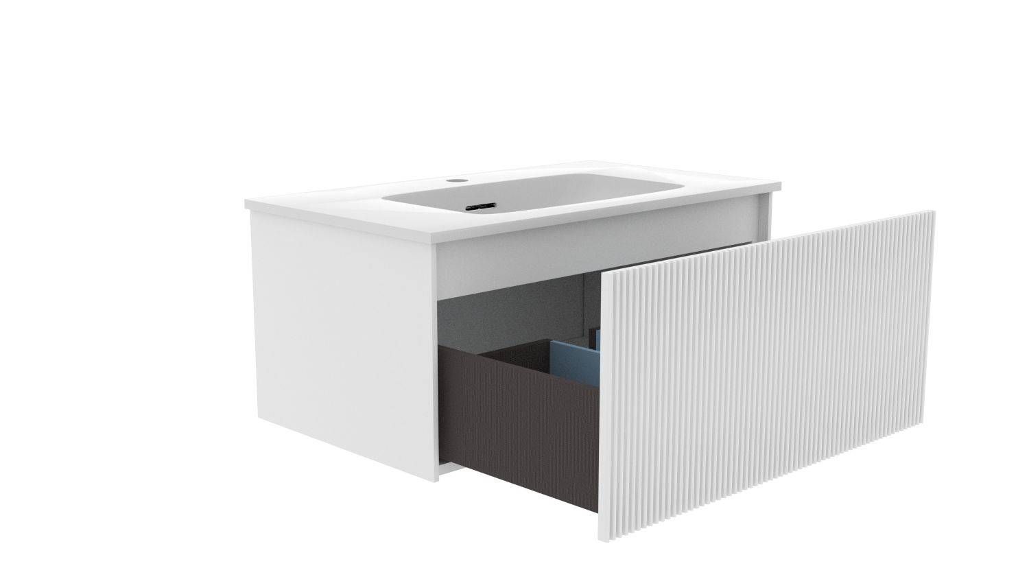 Тумба под раковину La Fenice Terra FNC-01-TER-B-80 74 смНовая коллекция Terra - это история долгого и кропотливого поиска уникального, ни на кого не похожего дизайна, в сочетании с современным качеством. Ультратонкая и идеально ровная раковина, механизм открывания push-to-open, плавное закрывание дверей и ящиков.