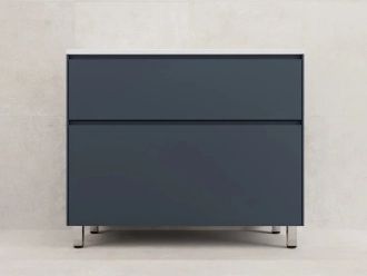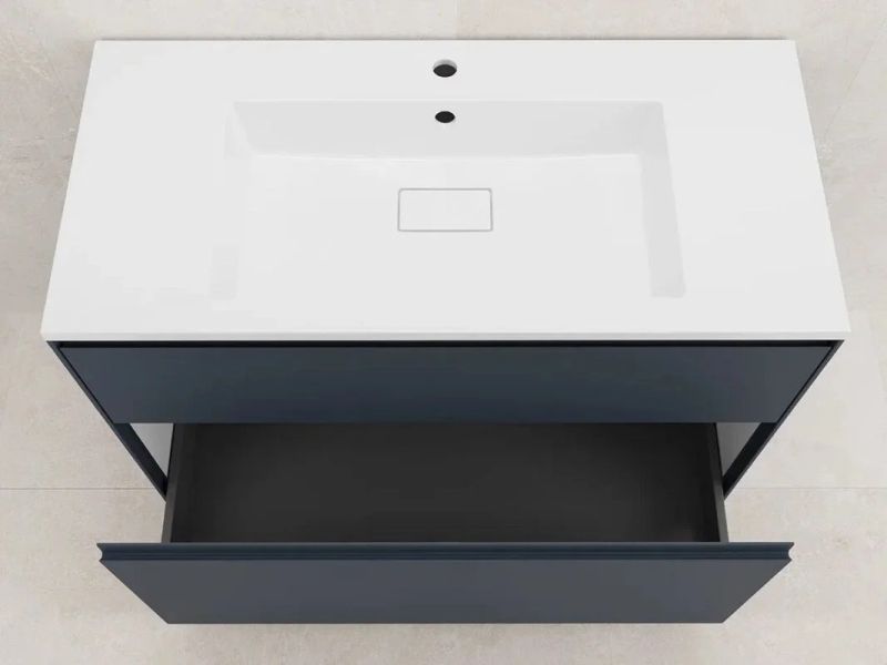 - Тумба оборудована двумя вместительными ящиками, которые позволяют удобно организовать хранение косметических средств, полотенец и других предметов.