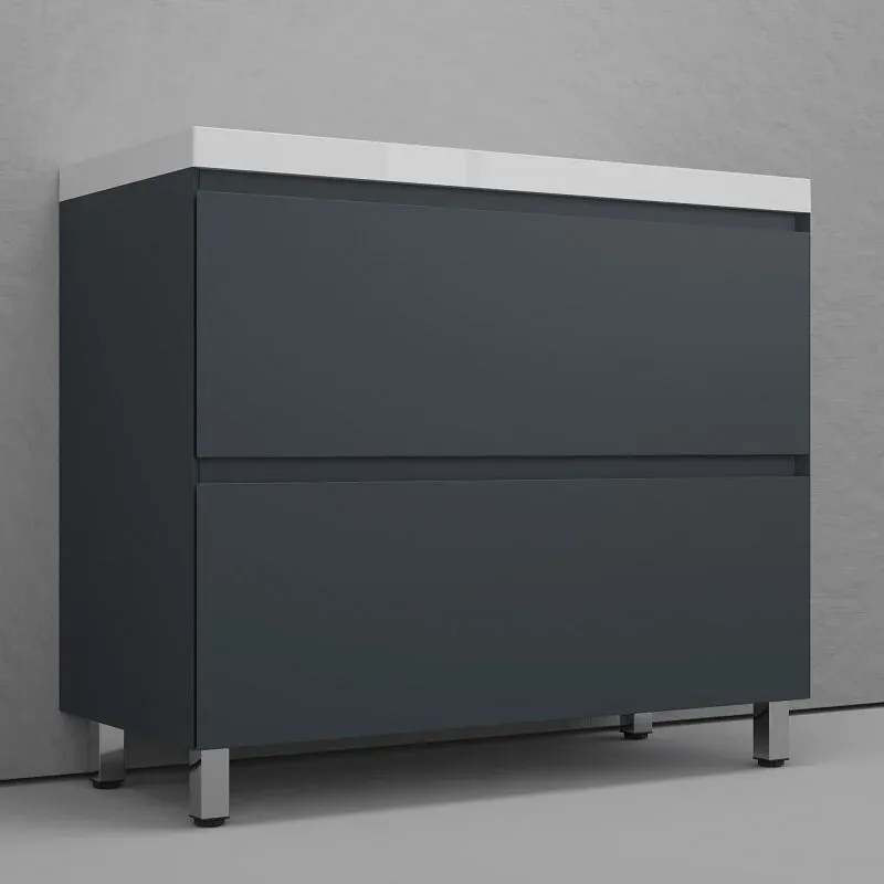 Тумба под раковину Style Line Манхэттен 100 ЛС-00002369, 100 см, напольная, графитЭмаль премиум класса Hesse (Германия) с сатиново - матовым эффектом. Вместительные ящики оснащены системой плавного закрывания HETTICH. Раковина приобретается отдельно. Подходит раковина Asti 100 в белом цвете, графит, жасмин и серый шелк.Основные характеристики: