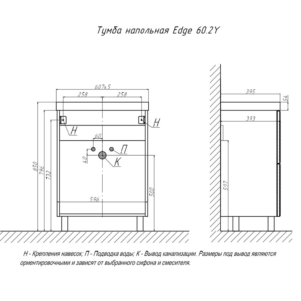 Тумба под раковину напольная Velvex Edge tn.EDG.9696.60.2Y графит, 60 см
