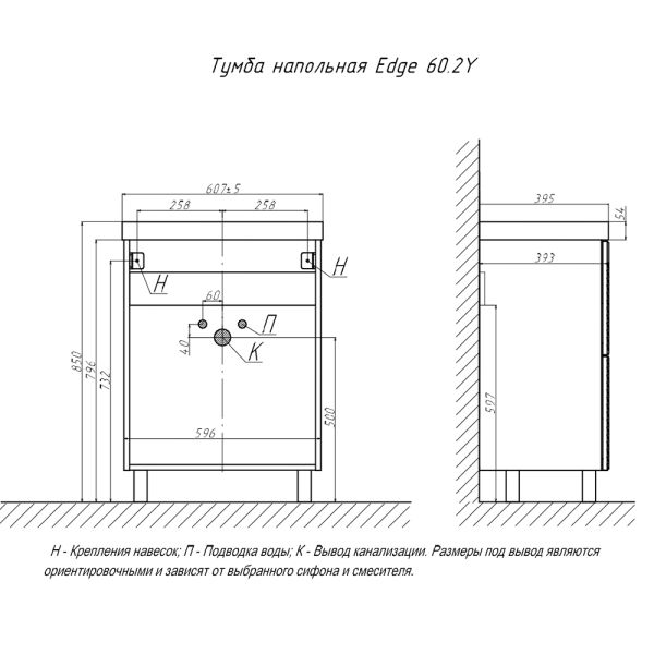 Тумба под раковину напольная Velvex Edge tn.EDG.9696.60.2Y графит, 60 см купить
