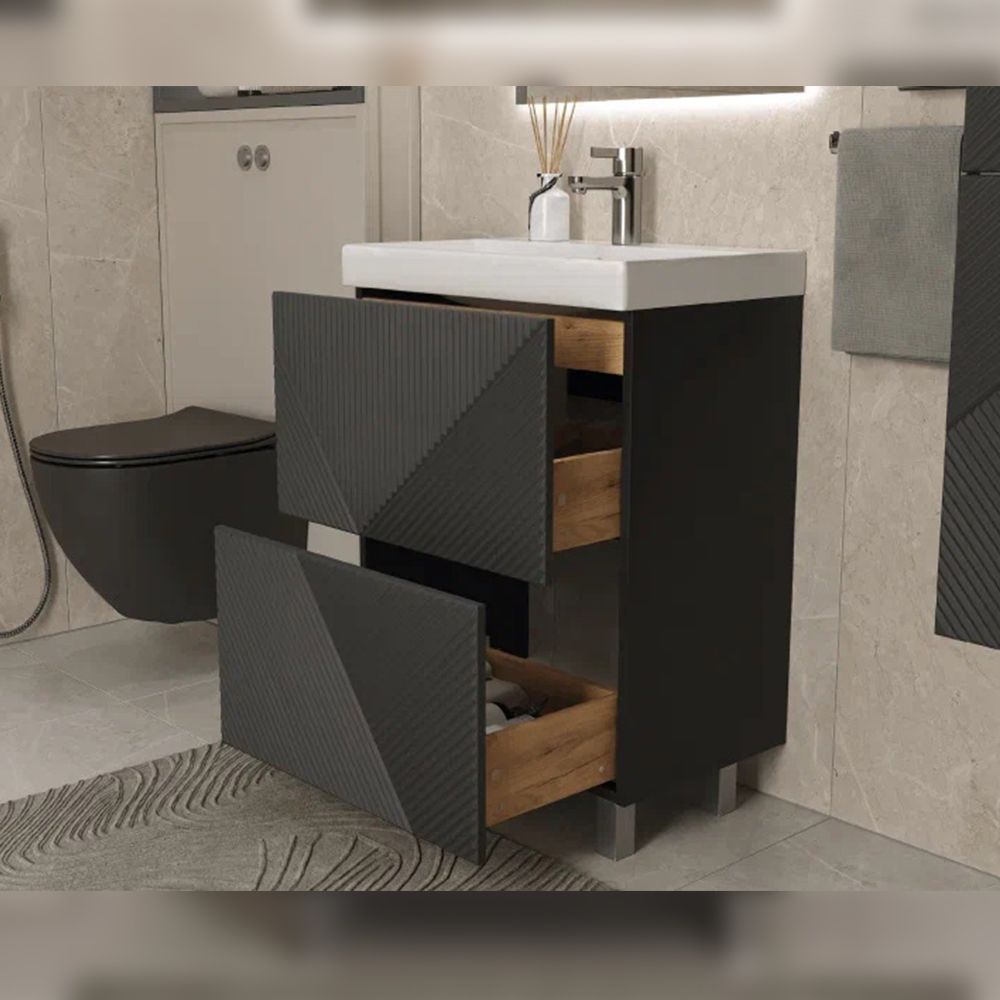 Тумба под раковину напольная Velvex Edge tn.EDG.9696.60.2Y графит, 60 см: 2 выдвижных ящика с механизмом открывания push-to-open.