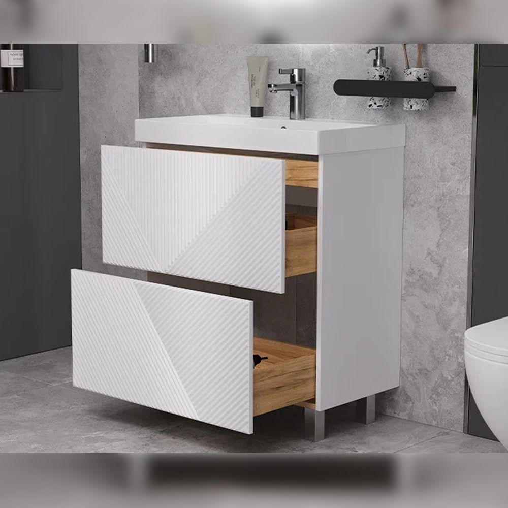 Тумба под раковину напольная Velvex Edge tn.EDG.9696.70.2Y белый глянец, 70 см: 2 выдвижных ящика с механизмом открывания push-to-open.