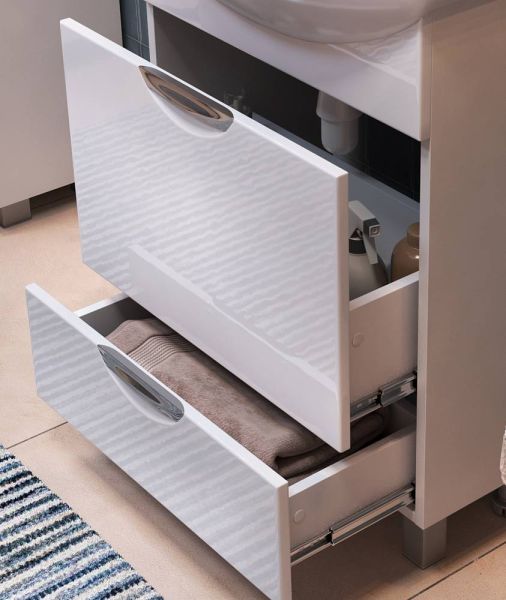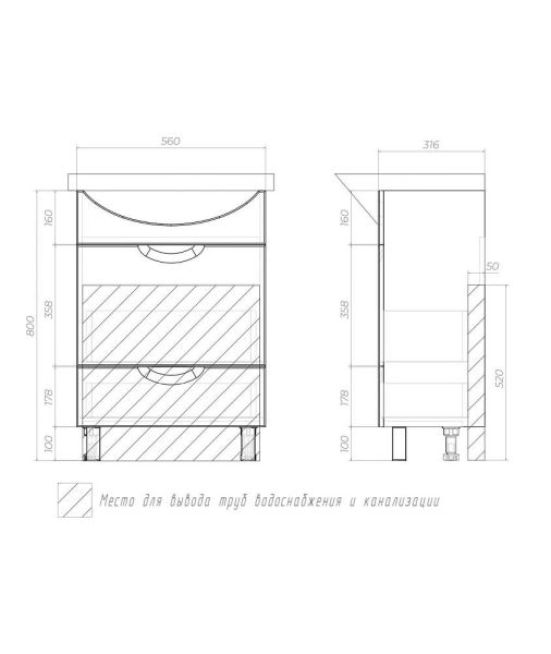 2 ящика; ручка врезная металлическая хромированная; опоры квадратные регулируемыеМатериал корпуса: влагостойкая ЛДСПМатериал фасадов: ЛМДФПокрытие: пленка ПВХЯщики: направляющие полного выдвижения.