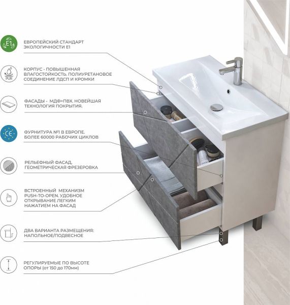 Тумба под раковину напольная Vigo Geometry tn.bsf.GEO.9696.80.2Y 80 см бетон купить
