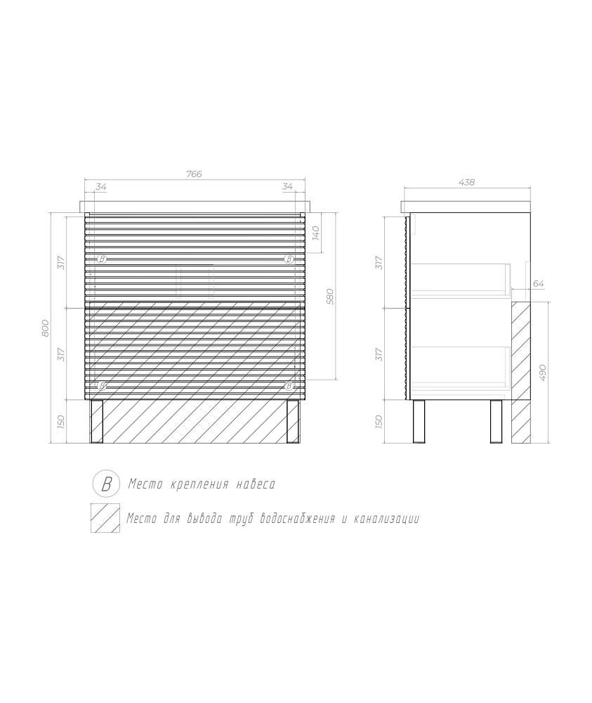 Тумбы Otti выделяются оригинальным исполнением фасадов, благодаря горизонтальной фрезеровке. Встроенный механизм push-to-open Hafele (Германия).Удобное открывание легким нажатием на фасадДва варианта размещения: напольное/подвесное