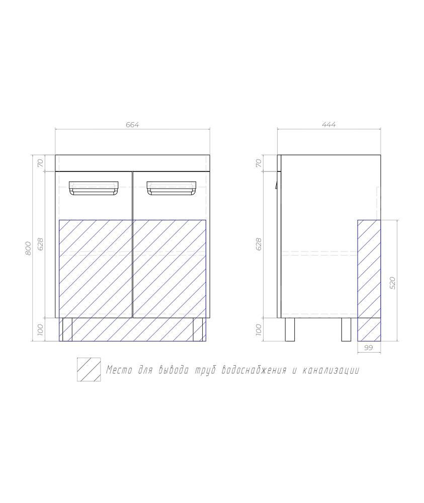 Тумба под раковину напольная Vigo Plaza tn.PLA.COM.70.2D 70 см белый купить