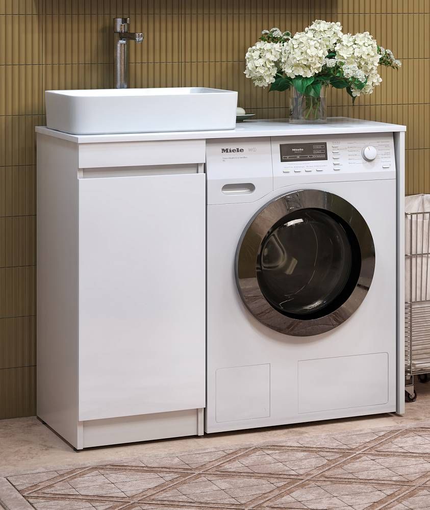 Специальный сифон Vigo в комплекте.Материал корпуса: влагостойкая ЛДСПМатериал фасада: ЛМДФПокрытие фасада: пленка ПВХОтсутствие лицевой фурнитуры – интегрированная ручка.В комплект поставки входит только тумба, столешница приобретается отдельно!